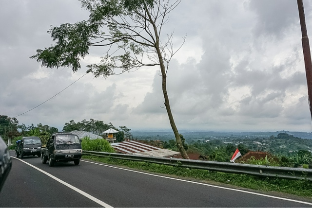 Ketika masuk Baturiti, jalannya benar-benar naik ke atas. Meliuk-liuk menyusuri gunung. Udaranya dingin. Serasa berada di puncak. Ya emang lagi di puncak!